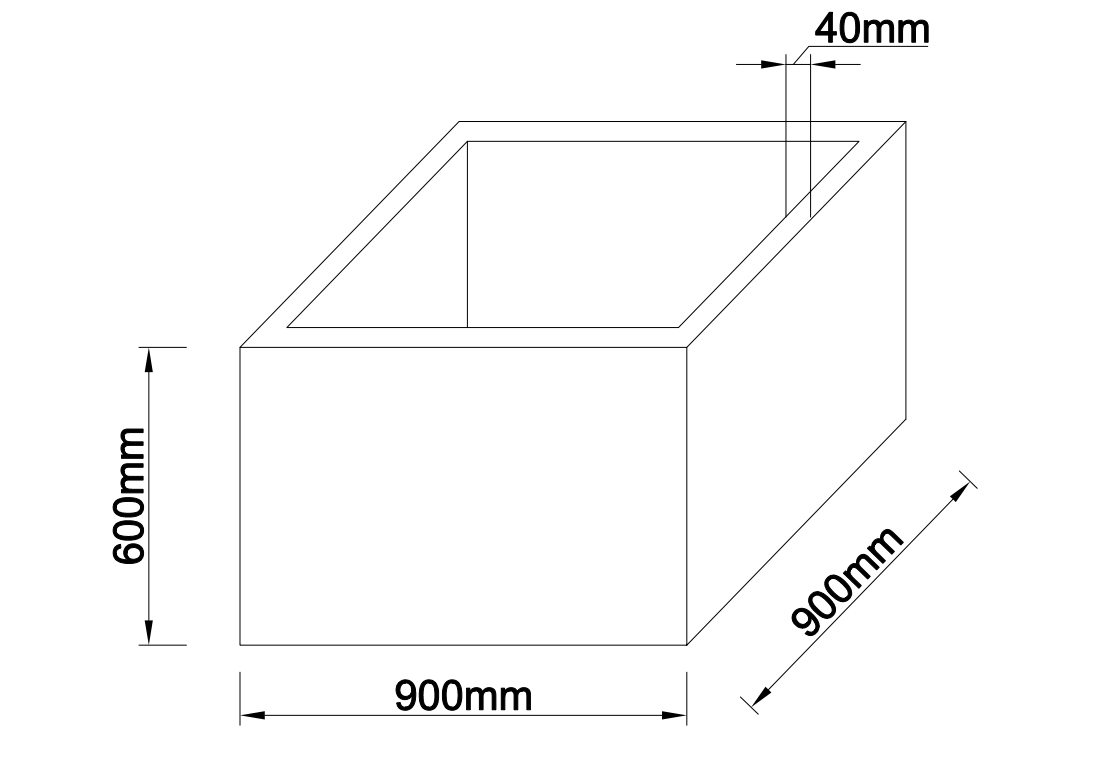 Pflanzkübel | Fiberglas | niedrige quadratisch | 90x90x60cm | schwarz-matt.