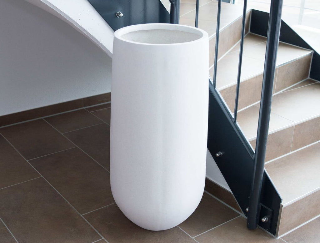 Der elegante Pflanzkübel aus Fiberglas erfreut mit warmem Perlmuttweiß und edler Form. Das rund-konische Design wirkt harmonisierend auf die Atmosphäre und bringt Leichtigkeit und Frische in jeden Raum. Dieser spezielle Weiß-Ton ist wärmer als klassisches Weiß und blendet auch dann nicht, wenn Sonnenlicht direkt darauf fällt. Die sehr glatte Oberfläche des Pflanzkübels wirkt schmutzabweisend und kann einfach mit einem weichen Tuch abgewischt werden. Sie können den Kübel flexibel als Übertopf verwenden oder direkt bepflanzen. Wenn Sie sich für Letzteres entscheiden, empfehlen wir, ein Ablaufloch in den Boden des Gefäßes zu bohren. Wenn Sie ihn im Freien aufstellen, wird so die Bildung von Staunässe zuverlässig verhindert. Ein kleiner Tipp: Stellen Sie diesen schönen Pflanzkübel in einen Bereich, den Sie als zu dunkel empfinden – der optische Effekt wird die ganze Umgebung aufhellen.