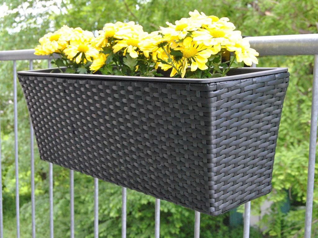 Der formschöne Pflanzkasten aus Polyrattan in schwarz überzeugt mit dem verspielten Korblook. Von Hand geflochten, sind alle Stücke Unikate, die mit individuellen Merkmalen versehen sind. Zeitlos in Farbe und Design passt er in jede Umgebung. Er bringt einen noblen Hauch in Ihr Interieur und lässt die Farben Ihrer Pflanzen strahlen. Der mitgelieferte Pflanzeinsatz verfügt über ein Ablaufloch. So vermeiden Sie Staunässe, wenn Sie den Kasten im Freien nutzen und es einmal ergiebiger regnet. Wenn Sie ihn im Haus aufstellen möchten, verschließen Sie das Ablaufloch einfach mit dem mitgelieferten Gummistopfen. Der Kasten ist dann absolut wasserdicht. Sie können den Kasten mit Erde oder Hydrokultur befüllen und mit entsprechenden Montagematerialien auch an Geländern oder außen am Fenster befestigen.