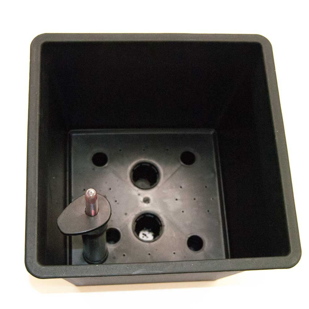 Für den Einsatz im Garten oder auf der Terrasse muss ein Ablaufloch seitlich 4 cm vom Boden der Einsätze gebohrt werden.